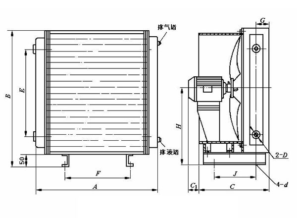 FL型油冷卻器是液壓系統(tǒng)常用的一種空氣熱交換器。采用環(huán)境空氣作為冷卻源,用來冷卻管內(nèi)熱油,屬于風(fēng)冷式空氣冷卻器,以“風(fēng)冷”的第一個字母命名,以換熱面積作為后綴。如FL-5,即表示該型號為風(fēng)冷形式,換熱面積為5平方米。