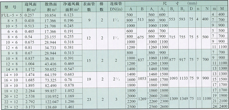 FUL型散熱器外型尺寸及主要參數(shù)表